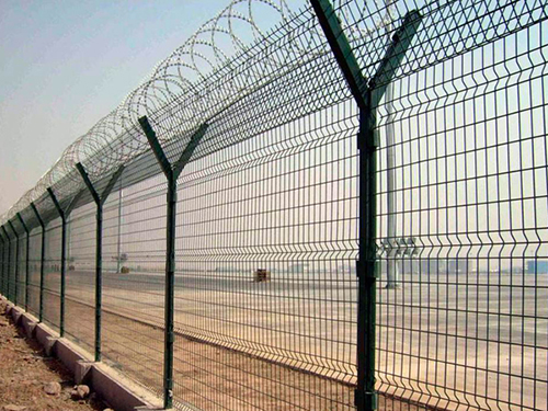 - 【產(chǎn)品簡(jiǎn)介】:機(jī)場(chǎng)監(jiān)獄護(hù)欄是由V型支架立柱,加強(qiáng)型焊接片網(wǎng),安全防盜連接件和熱鍍鋅刀片刺網(wǎng)組成強(qiáng)度和安全防御性級(jí)別很高。近年來(lái),被廣泛應(yīng)用在機(jī)場(chǎng),軍事基地等高安全場(chǎng)所。材質(zhì):優(yōu)質(zhì)低碳鋼絲絲徑:5mm網(wǎng)孔:50mmX100mm,50mmX200mm立柱:60x80mm鍍鋅方管